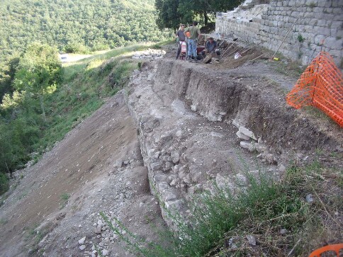 Les murs de soutènement ont été dégagés et dès le lundi 5, c'est au tour de l'association de sauvegarde de prendre le relais sur ce chantier. Organisant un chantier international de bénévoles (français, russes, espagnols, belges), l'association et les jeunes volontaires vont restaurer et consolider les murs de la rampe d'accès en vue d'une prochaine restauration plus importante. Renouvelant l'aspect de l'entrée du château, ces travaux d'archéologie et de restauration sont à découvrir pendant tout le mois de juillet.