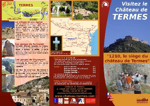 Nous vous présentons ici le nouveau document d'appel (ou flyer) du château de Termes. Ce document présente les nouveautés comme l'exposition permanente sur le siège du château et le film d'introduction à la visite. En cliquant sur les documents, vous pouvez les télécharger au format pdf.